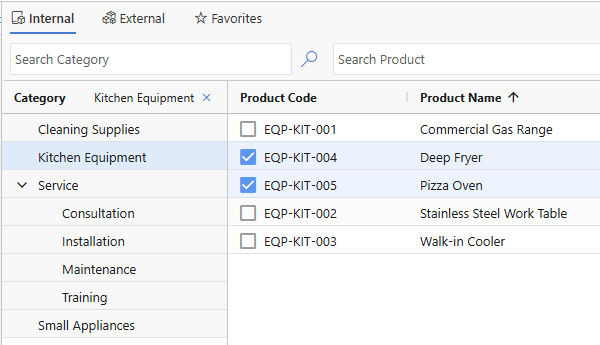 Internal: Utilizes the Dynamics product catalog.